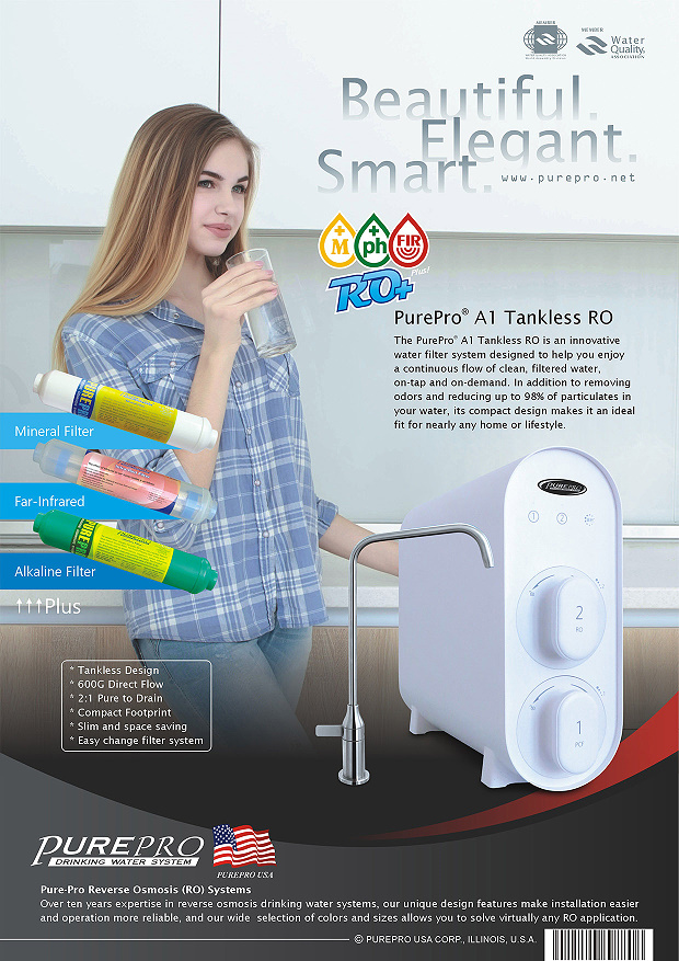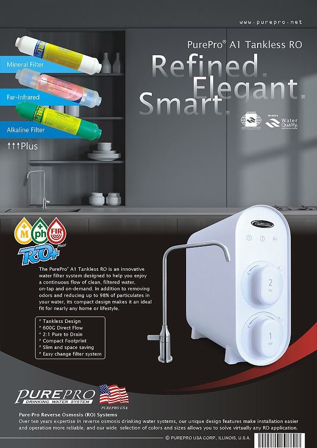 The PurePro® A1 Tankless Reverse Osmosis system transforms potentially harmful tap water in clean, pure water right under your eyes
