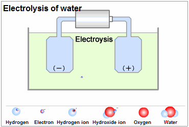 water that generates hydrogen at the cathode (-) and oxygen at the anode