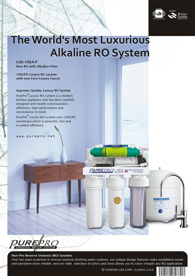 LUX106A-P is a super quality 6 stage filter system comes with PurePro® Alkaline Filter, to offer the very best in water filtration and balanced pH water for drinking. Using reverse osmosis technologies with alkaline filter can actually remove 99.99% of contaminants and provide people with healthy alkaline drinking water.