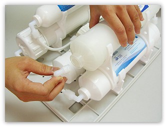 Replacing the filters on this system is one of the easiest to do. Inline filter makes cartridge replacement fast, clean & easy, without contact with used filter material . No Mess, No Fuss with these filters just remove the old ones and install the new filters.