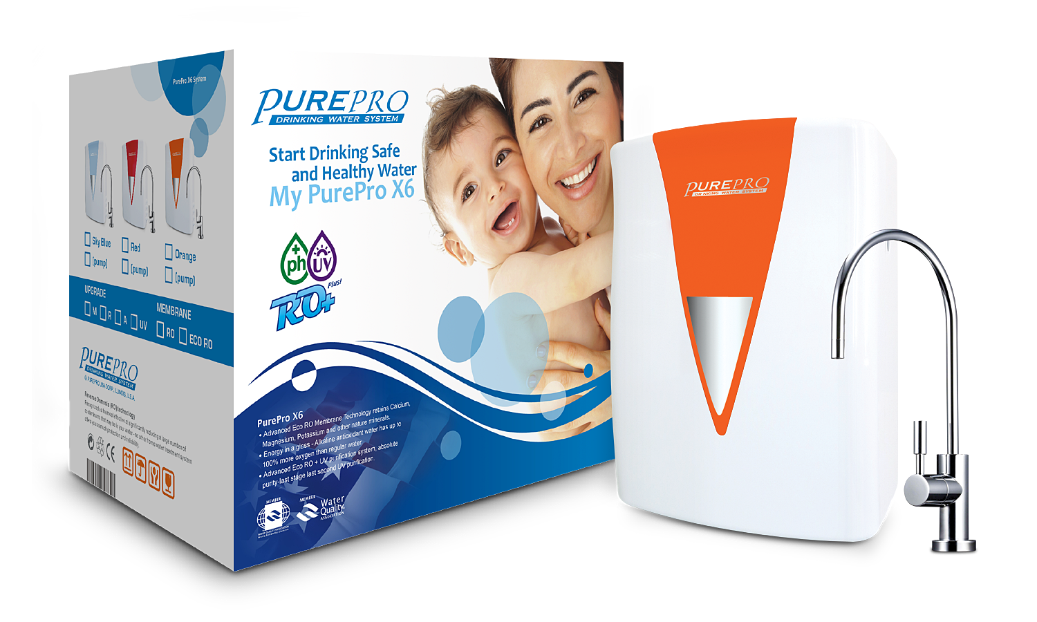 This revolutionary new My PurePro X6 system uses The New Generation Eco RO Membrane with a Mineral Guard technology retains essential minerals in your drinking water, making it safe, pure and healthy. 6 stage advanced Eco RO + UV purification system, absolute purity-last stage last second UV purification. PurePro Advanced Eco RO cartridge retains nature essential minerals. ( Alkaline Water For Better Health ! )